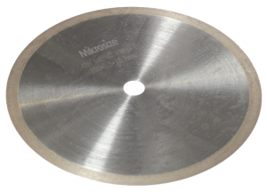 Most wafer cutting is done at speeds between 50 rpm and 5000 rpm with loads varying from 10-1000 grams.Generally, harder specimens are cut at higher loads and speeds (e.g, ceramics and minerals) and more brittle specimens are cut at lower loads and speeds (e.g, electronic silicon substrates). It is interesting to note that the cutting efficiency for sectioning hard/tough ceramics improves at higher speeds and higher loads. |